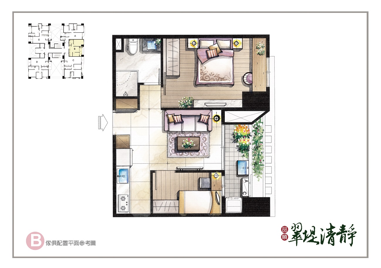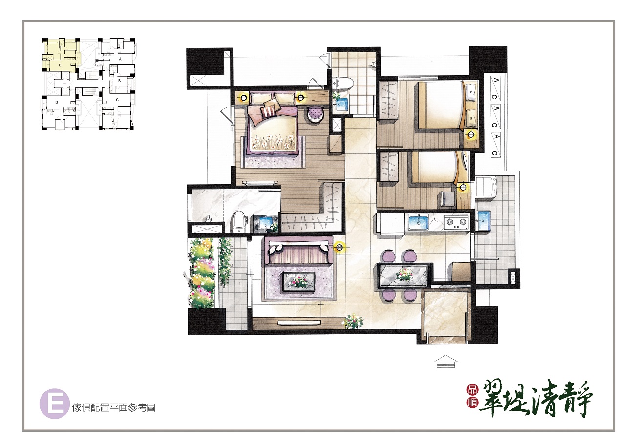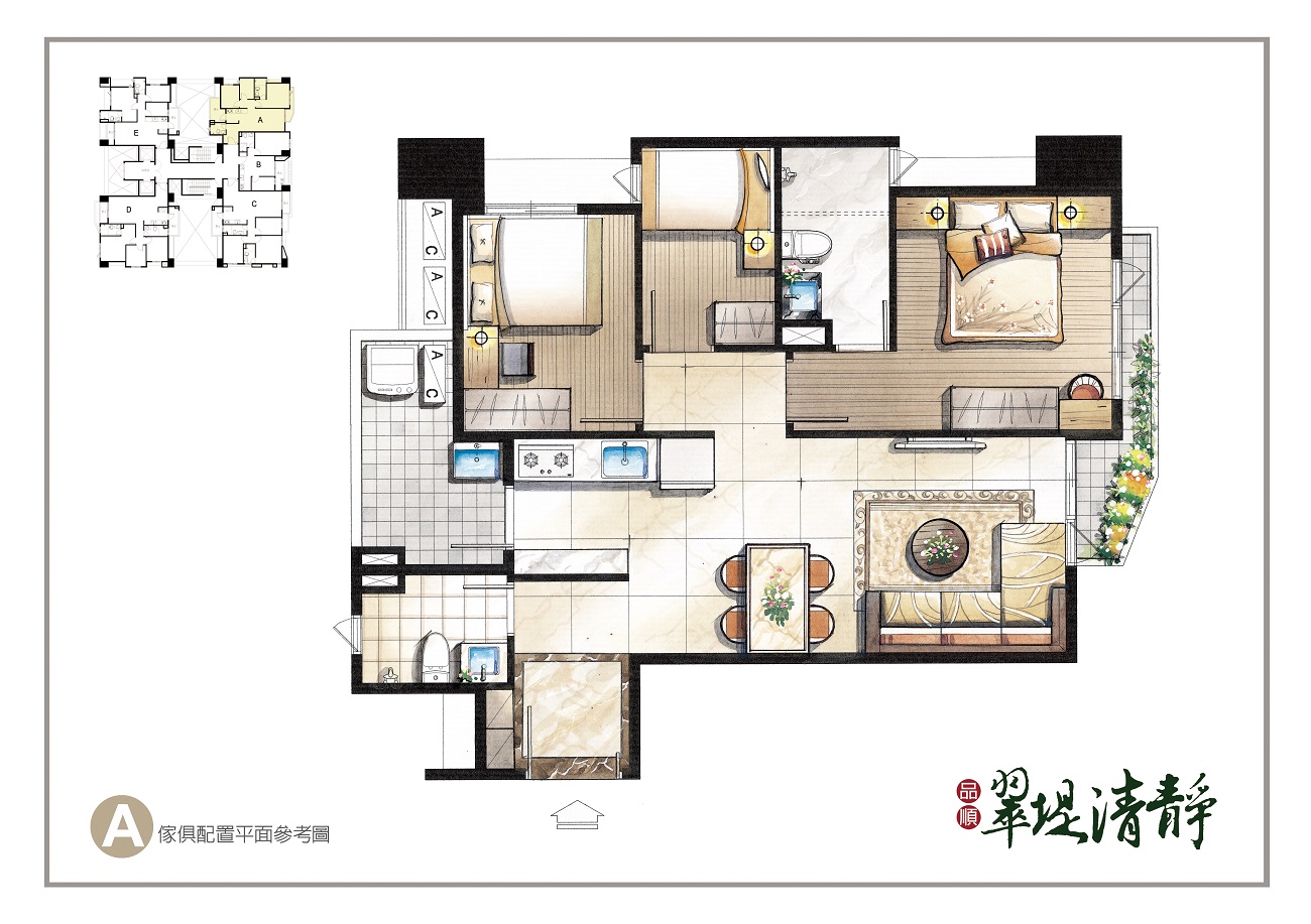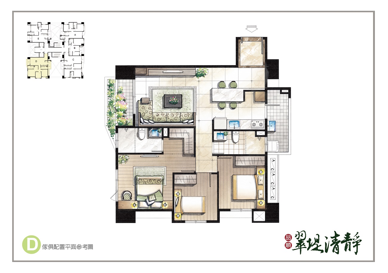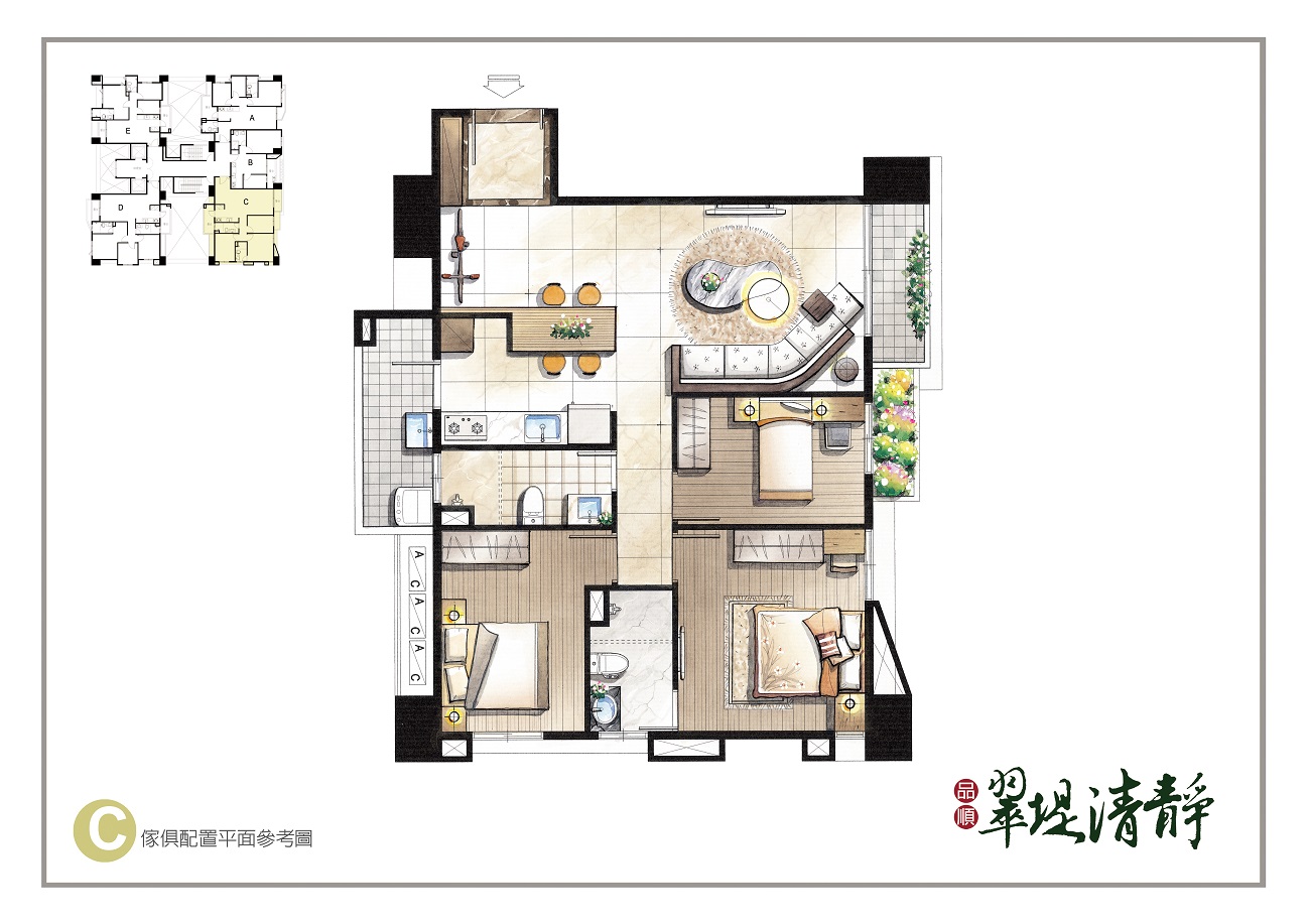 創造三面採光通風的絕佳生活空間,面對旱溪超大棟距與低密度重畫區,永久視野無阻。